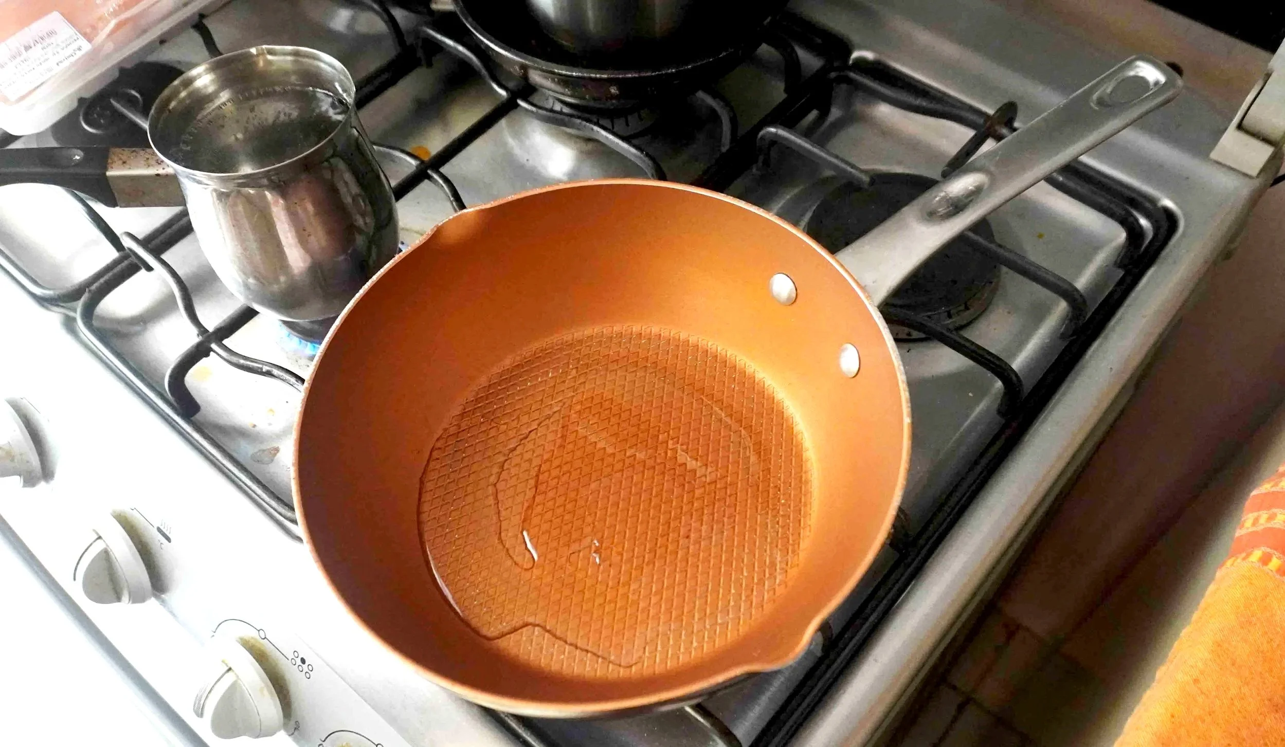 Cut the cactus into small pieces and put into a pot with water. Cook on medium heat for about 10-15 minutes. Set aside.