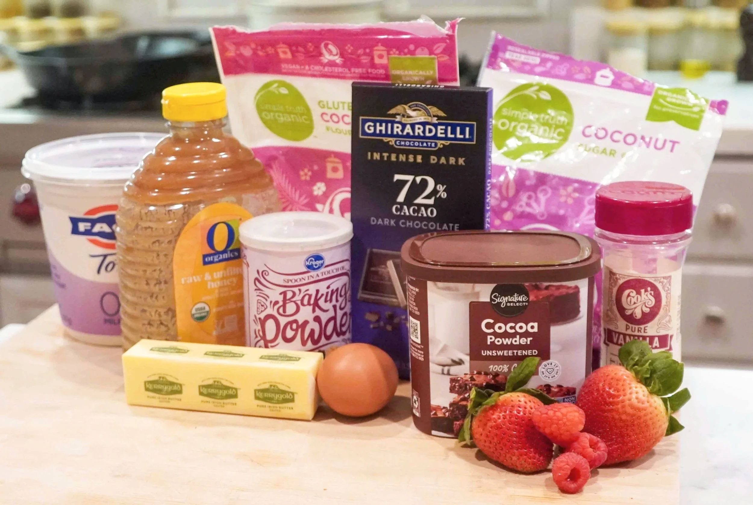 Food groups: protein (egg + nuts and seeds (coconut flour)), fruits (raspberries or strawberries), dairy (butter + greek yogurt)
